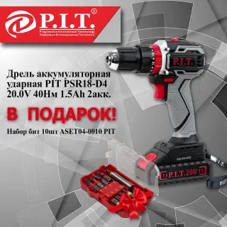 При покупке Дрель аккумуляторная ударной 20.0V 40Нм 1.5Ah 2акк. PIT PSR18-D4 - вы получаете приятный бонус - Набор бит 10шт ASET04-0010 PIT за 1рубль.