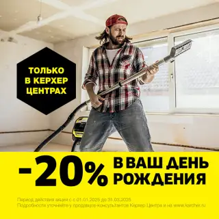 Бренд Kärcher дарит вам скидку 20% на покупки в честь вашего праздника. Успейте воспользоваться выгодным предложением и порадуйте себя качественной техникой для уборки! 🎁Список товаров участвующих в акции доступен тут