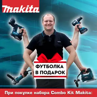 К покупке одного из наборов Макита в магазинах Мастер подарим рубашку-поло